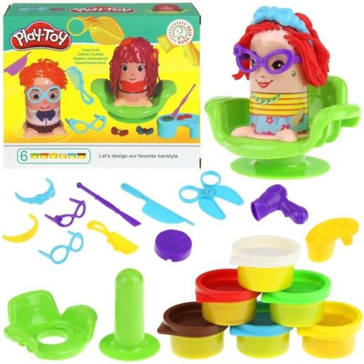 Hagyd, hogy elragadja fantáziád, és készíts olyan divatos frizurákat, amelyek ötvözik az aktuális divatirányzatokat a képzeleteddel. A készlet ötvözi a tanulást a kreatív játékkal, fejleszti a gyermek érdeklődését, és segíti a kisgyermekek megszokását az első fodrászlátogatás alkalmával. Elég a figurát a fotelre helyezni, leengedni az állványra és megnézni, hogyan nő a gyurma (szőrt imitáló) a kliens arcán. A kiegészítőknek (olló, fésű, kés, díszformák) köszönhetően saját elképzelései szerint rendezheti, vághatja vagy díszítheti a frizurákat.